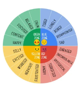 Openly talk about the different zones and times you experience them (e.g. “I’m feeling frustrated and in the yellow zone. I’m going to step away and take some deep breaths to help me feel better”) then model it. Have a copy of the ZOR feelings wheel to use as a visual (see link below)